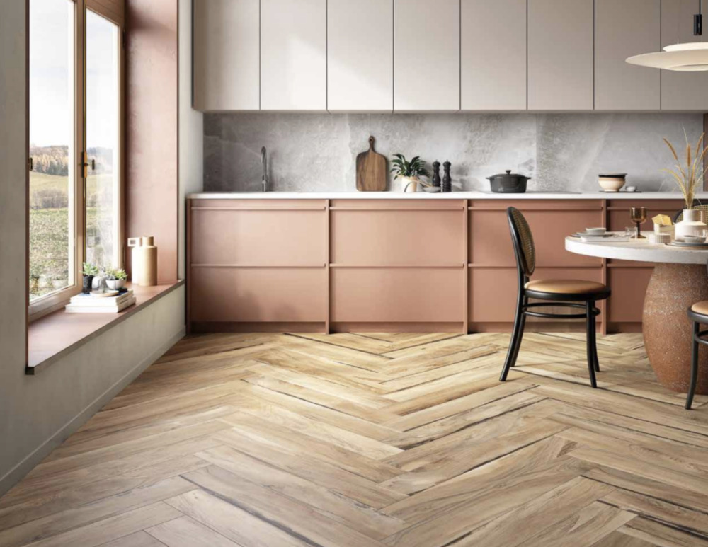 The Sherwood Series represents a natural timber look, available in Oak & Walnut. This small timber tile is ideal to be laid in a herringbone pattern.